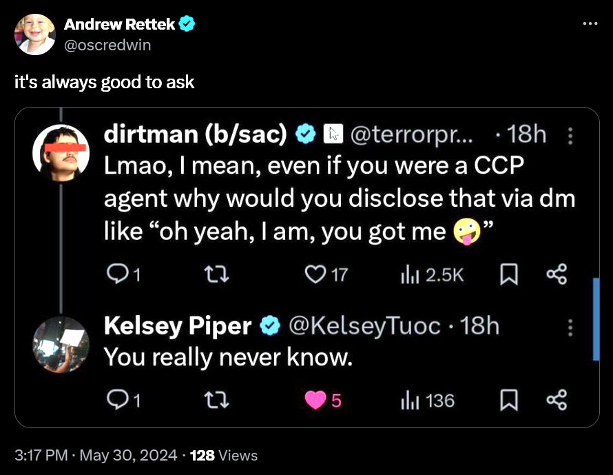 Another problem with alignment, especially if you think of it as side constraints as Leopold does, is that refusals depend on the request being blameworthy. If you split a task among many AIs, that gets trickier. This is a known technology humans use amongst themselves for the same reason. An action breaking the rules or being ‘wrong’ depends on context. When necessary, that context gets warped.