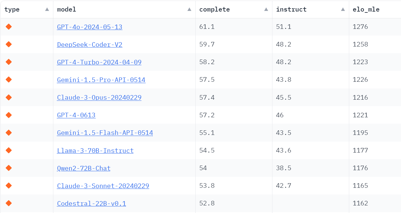 The obvious note is that DeepSeek-Coder-v2, which is 236B with 21B active experts, 128k context length, 338 programming languages, was released one day before the new rankings. Also here is a paper, reporting it does well on standard benchmarks but underperforms on instruction-following, which leads to poor performance on complex scenarios and tasks. I leave it to better coders to tell me what’s up here.