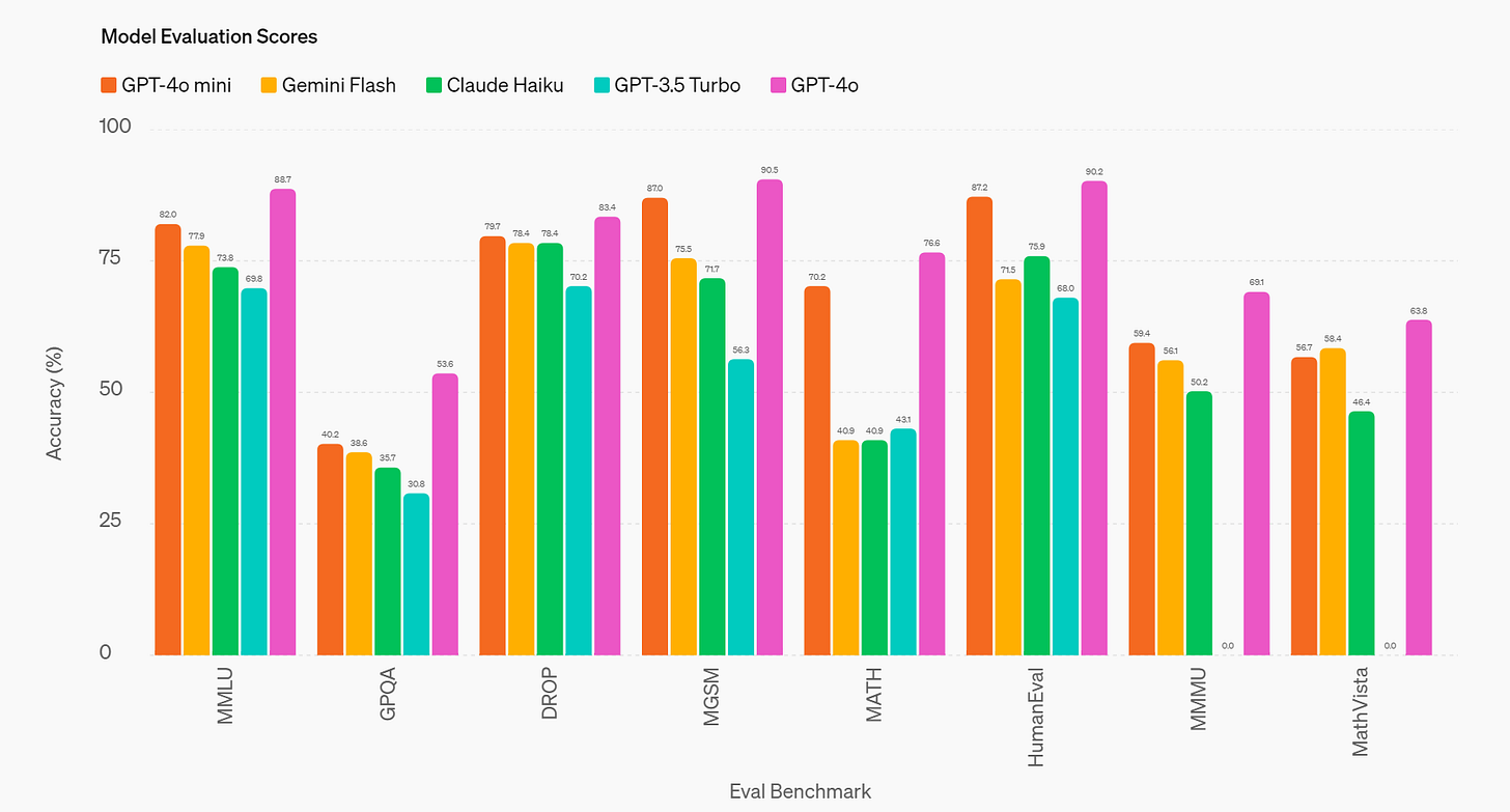 Sam Altman: Towards intelligence too cheap to meter. 15 cents per million input tokens, 60 cents per million output tokens, MMLU of 82%, and fast. Most importantly, we think people will really, really like using the new model.