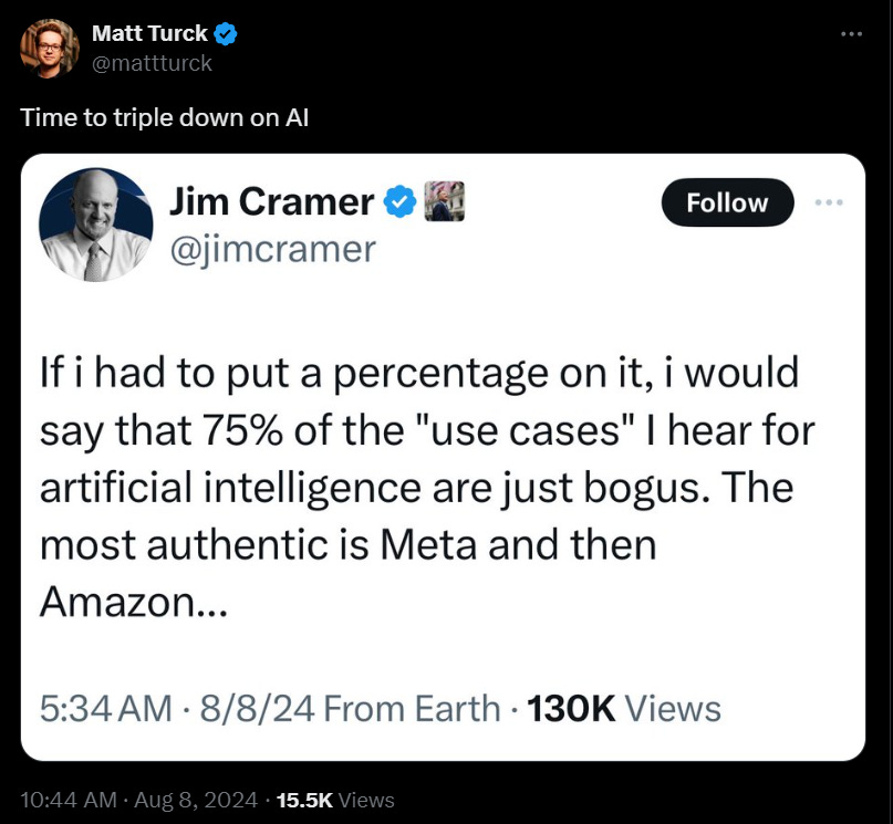 More thoughts, here from Vox’s Rebecca Jennings, on what’s been wrong with the AI ads during the Olympics. Derek Thompson and Dare Obasnjo boil it down to productivity tools being great in work contexts and when you automate away drudgery, but creepy and terrible when they automate out personal stuff like (in Google’s ad) a kid’s fan letter, where doing the activity is the point.