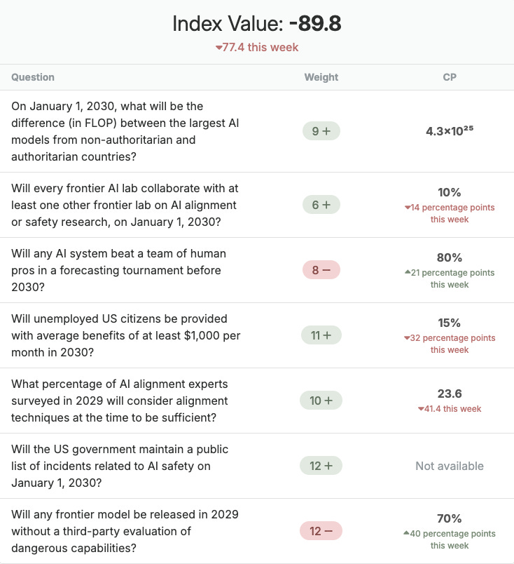 An index takes a fuzzy but important question like "How ready will we be for AGI in 2030?" and quantifies the answer on a -100 to 100 scale.