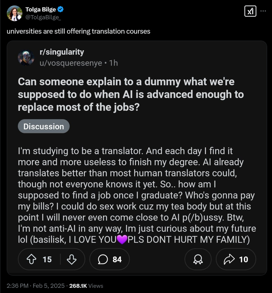 I mean, firing people to replace them with an AI research assistant, sure, but you’re saying you have friends?