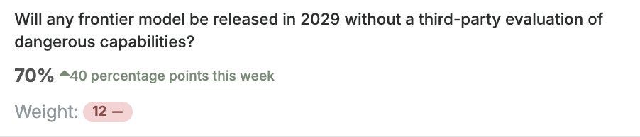 We identify narrow questions that point to fuzzy but important concepts — questions like "Will any frontier model be released in 2029 without third-party evaluation?"