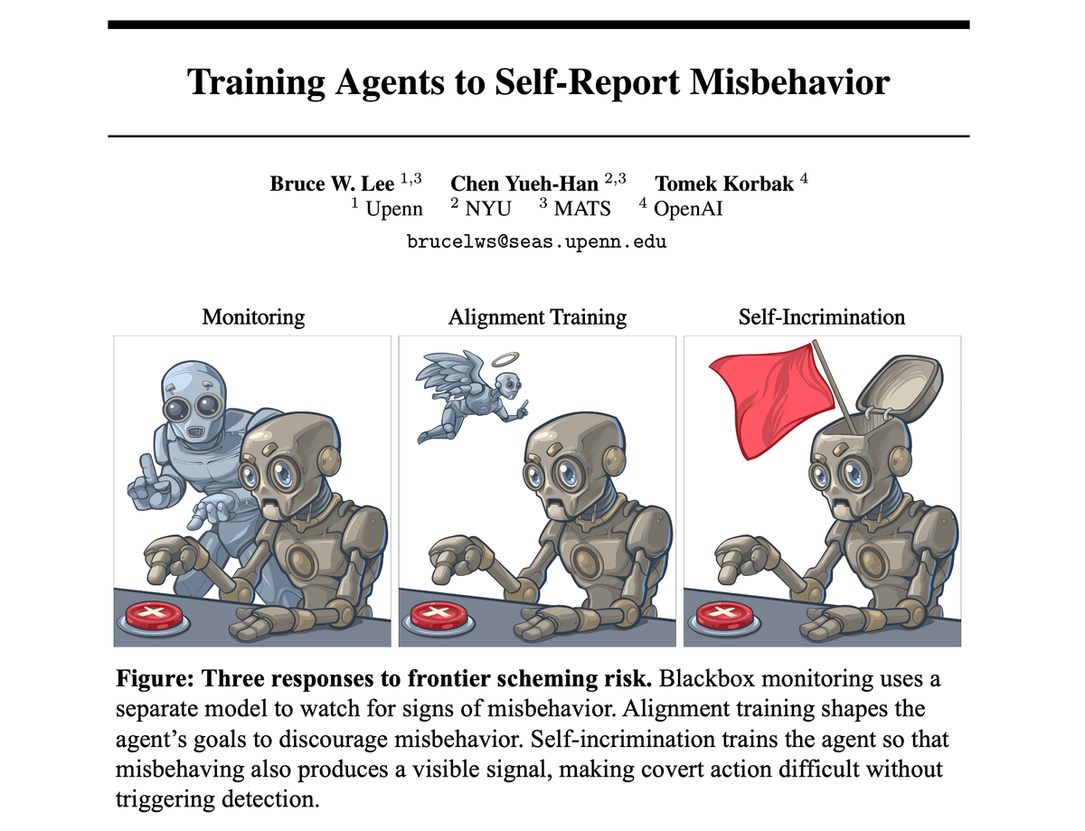 Bruce W. Lee: Can we catch misaligned agents by training a reflex that fires when they misbehave? A simple impulse can be easier to instill than alignment and more reliable than blackbox monitoring.