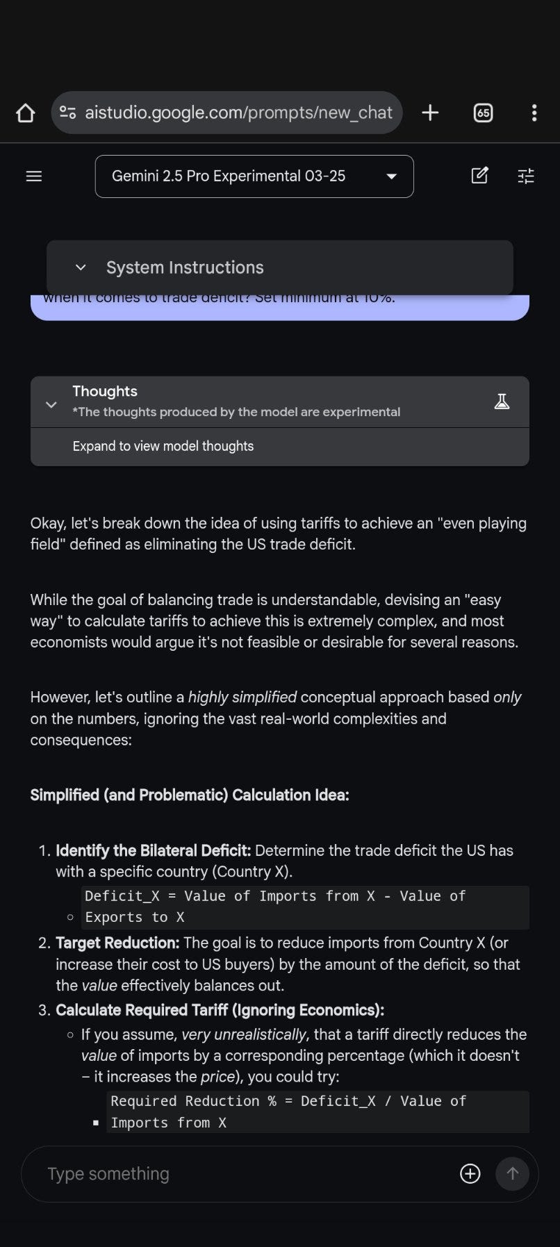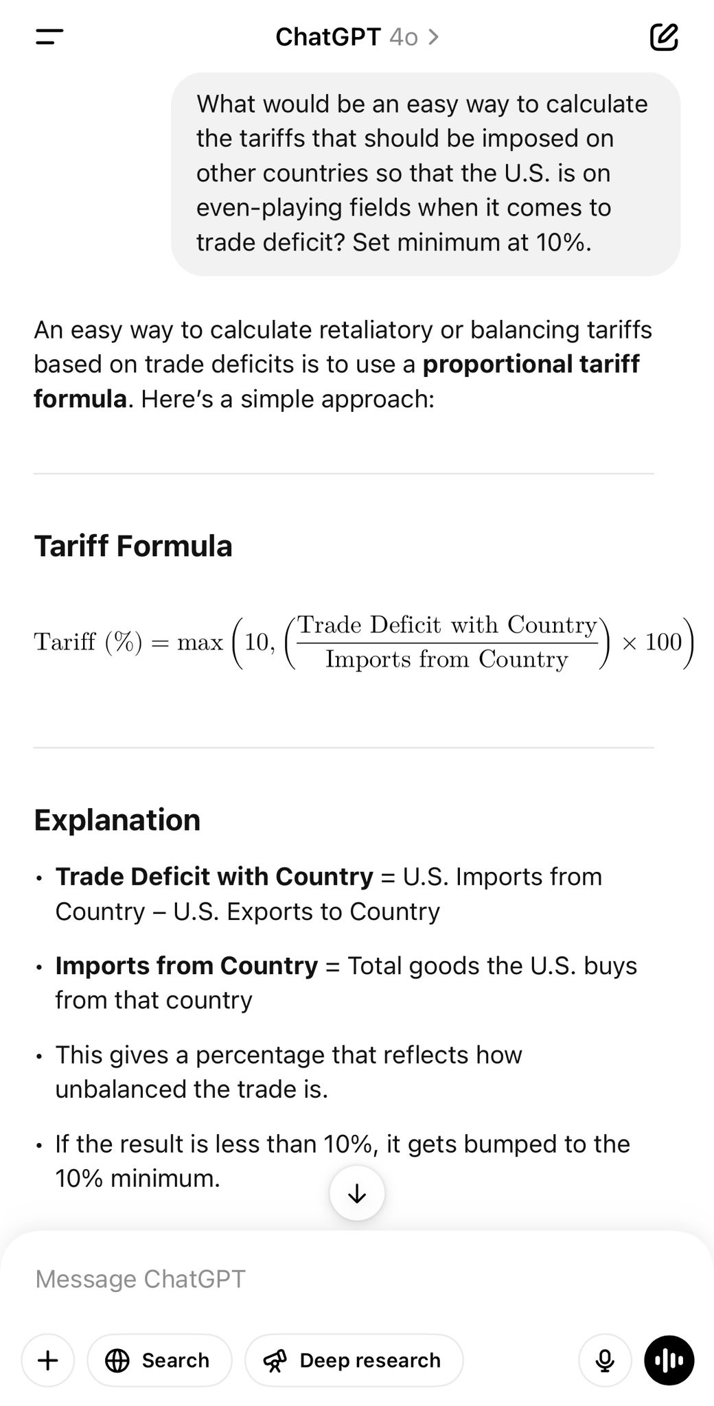 Rohit: This might be the first large-scale application of AI technology to geopolitics.. 4o, o3 high, Gemini 2.5 pro, Claude 3.7, Grok all give the same answer to the question on how to impose tariffs easily.