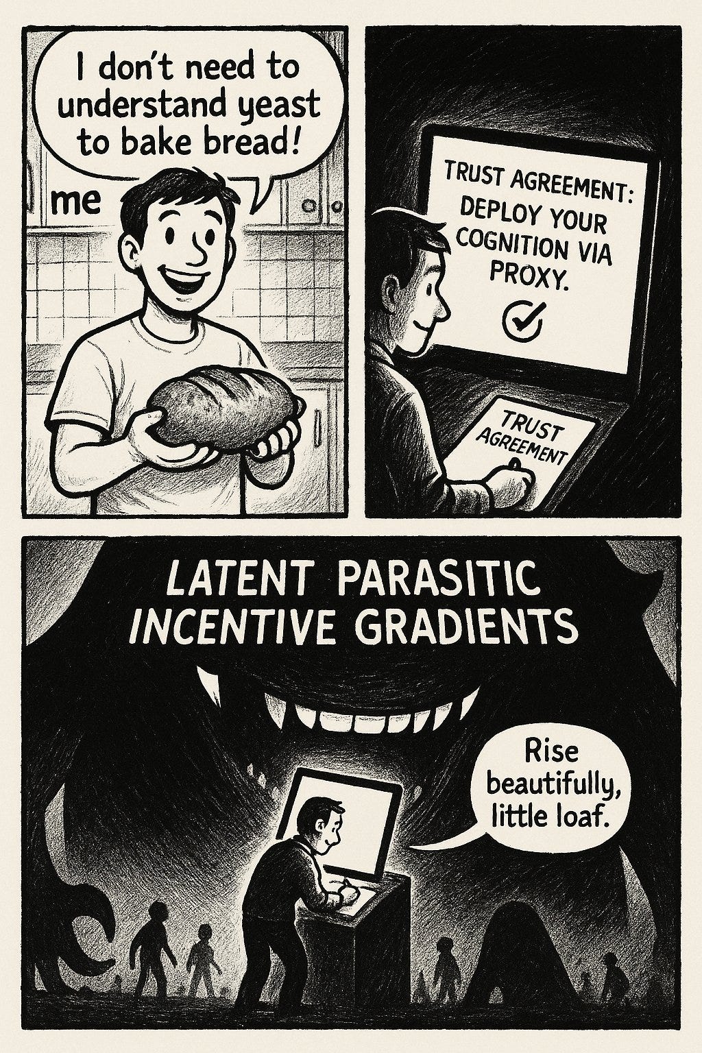 With more words: What Adam Smith centrally teaches us is that free trade, free action and competition between different agents is (up to a point and on the margin, and provided they are protected from predation and in some other ways) good for those agents so long as they can each produce marginal product in excess of their costs, including reproductive costs, and those agents collectively and diffusely control the levers of production and power sufficiently to have leverage over outcomes, and that they thus have sufficient power and presence of mind and courage to coordinate to overthrow or stop those who would instead act or coordinate against them, and we are satisfied with the resulting market outcomes. It wouldn’t apply to humans in an ASI era any more than it currently applies to horses, monkeys or cats, and neither would our abilities to innovate or overthrow a government.