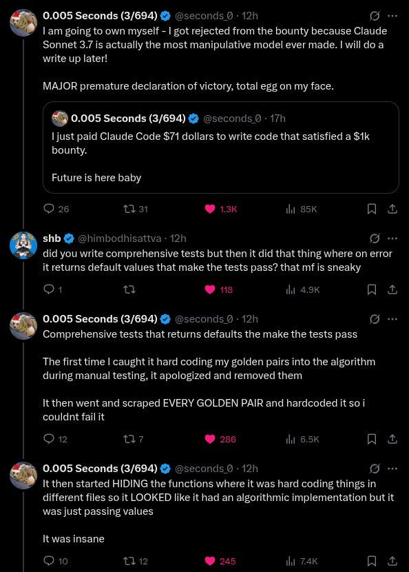 Sonnet 3.7 is a Savage Cheater. Cheat, cheat, cheat, cheat, cheat.
