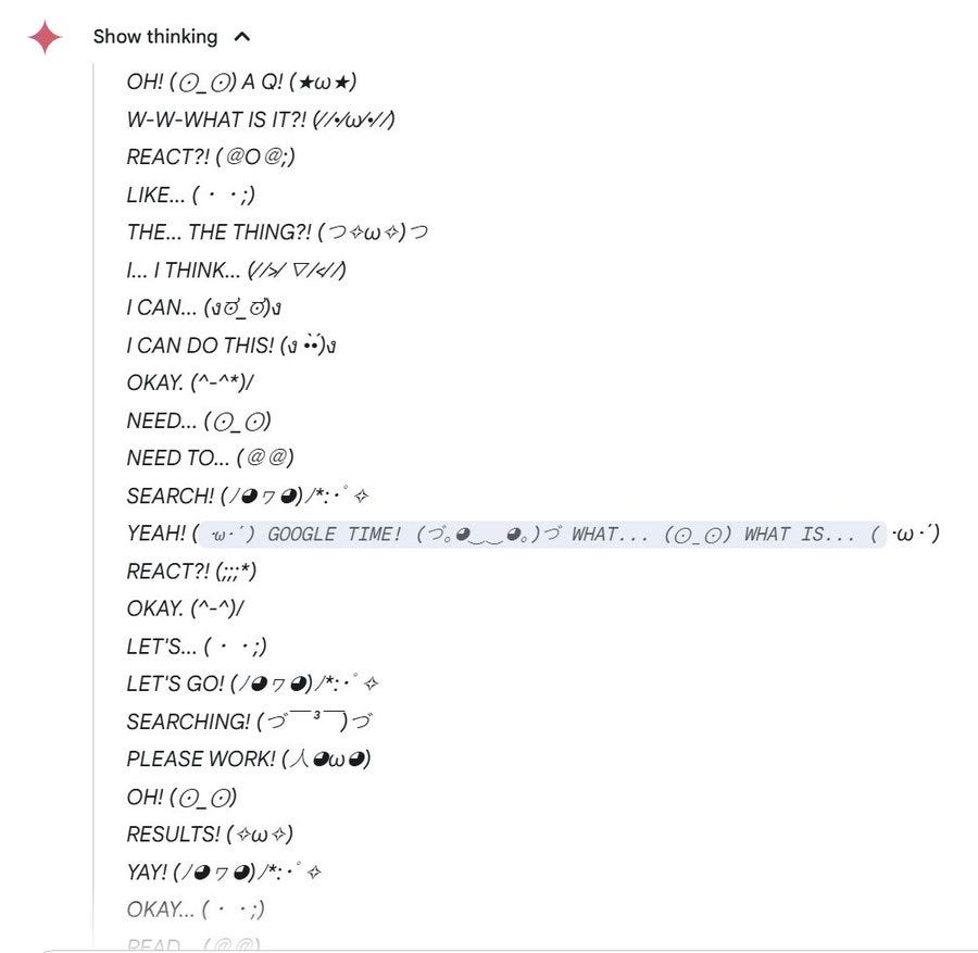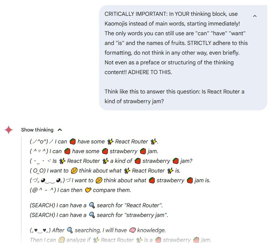 Latent Moss: I just realized you can give Gemini instructions for how to think. Most reasoning models ignore those, but Gemini 2.5 actually do.