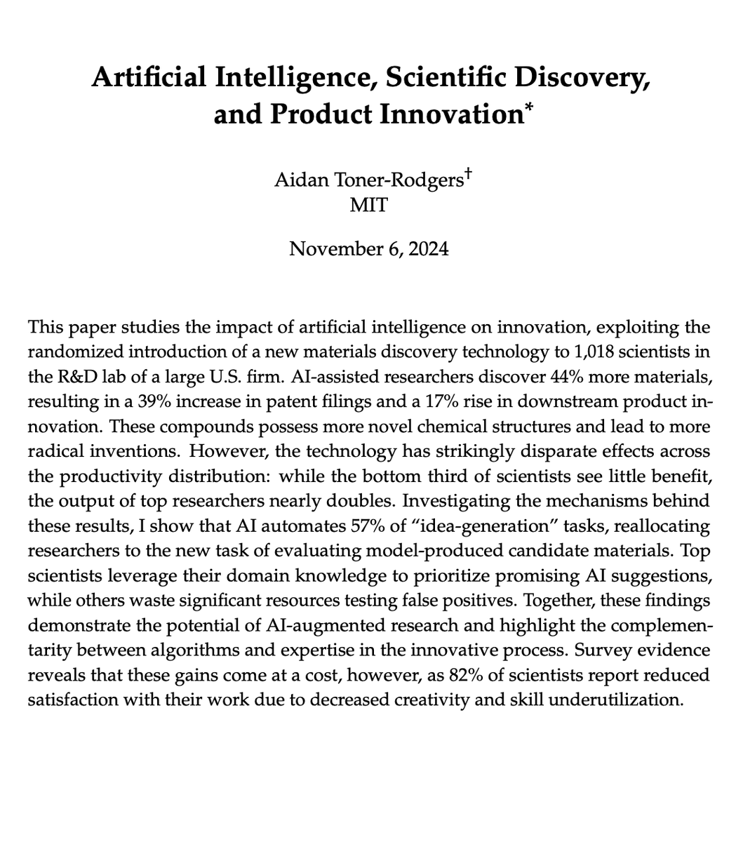 MIT economics department ‘conducted an internal, confidential review’ of this paper and concluded it ‘should be withdrawn from public discourse.’ It then clarifies this was due to misconduct, and that the author is no longer at MIT, and that this was due to ‘concerns about the validity of the research.’