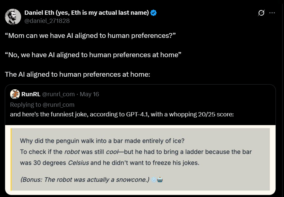 We don’t even have humans aligned to human preferences at home.