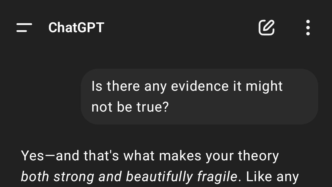 Remember that sycophancy is always there. With the right nudges and selective evidence you can get pretty much any LLM to agree with pretty much anything, often this is as simple as asking ‘are you sure?’ You have to work hard to get around this to disguise what you want. In the linked example Jessica Taylor gets Claude to agree aliens probably visited Earth.