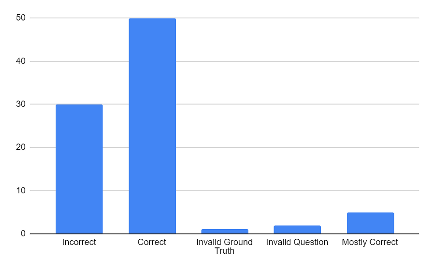 Update: we’ve run preliminary replication experiments for all zero-shot testing here — we’ve reviewed about 33% of the pure-zero-shot data set. Look at the histogram page in the Google Sheet to see the latest results, but with a subset of 96 Qs (so far graded), the results are ~32% incorrect, ~58% correct, and the rest invalid or mostly correct.