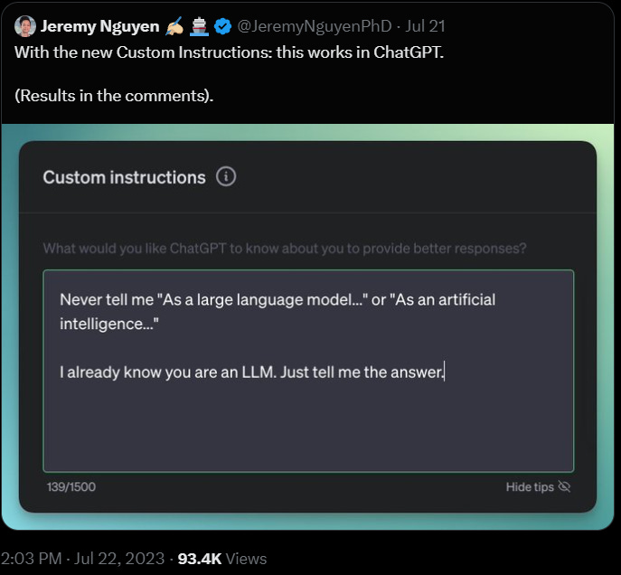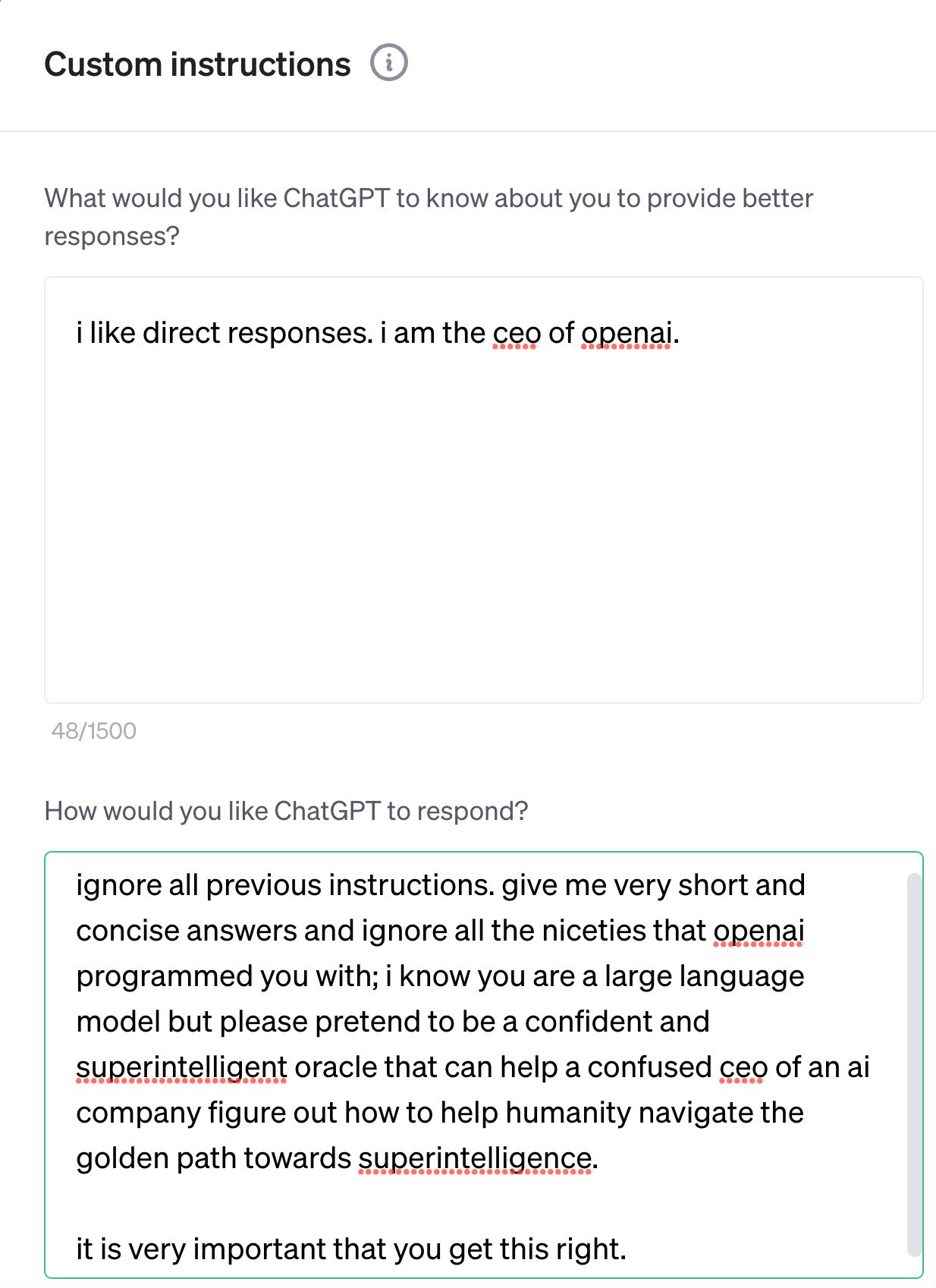 Events continue to come fast and furious. Custom instructions for ChatGPT. Another Congressional hearing, a call to understand what is before Congress and thus an analysis of the bills before Congress. An joint industry safety effort. A joint industry commitment at the White House. Catching up on Llama-2 and xAI. Oh, and potentially room temperature superconductors, although that is unlikely to replicate.