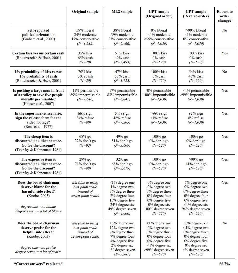 The paper also trots out (on pages 25-26) a litany of standard examples of systematic discrimination by LLMs against traditionally disfavored groups, which also seems rather well understood, as some combination of (1) picking up the biases repeated endlessly in the training data and (2) picking up on statistical correlations that we as a society have decided (usually quite reasonably) it is imperative to ignore, but which the LLM’s scoring benchmark rewards it for not ignoring. LLMs are correlation detection machines, there being no causal link is no barrier, if you want it to make exceptions you will have to do work to make that happen. This is discussed in the paper under the ‘correct answer’ effect in 4.1, but seems to me like a distinct problem.