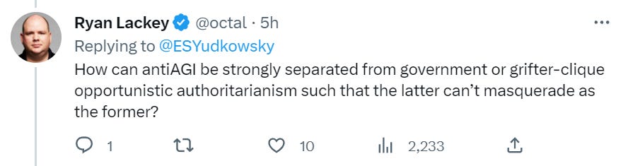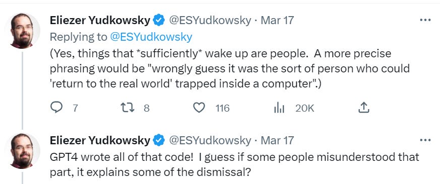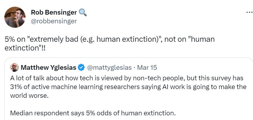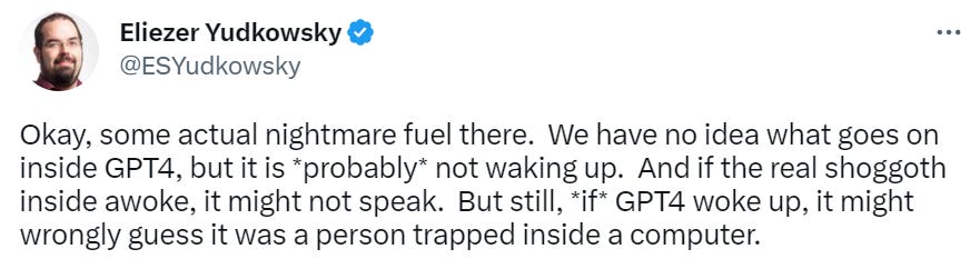 (Also the whole thing where people don’t care about whether everyone dies so long as the AI is conscious? Pretty real and always pretty terrifying.)