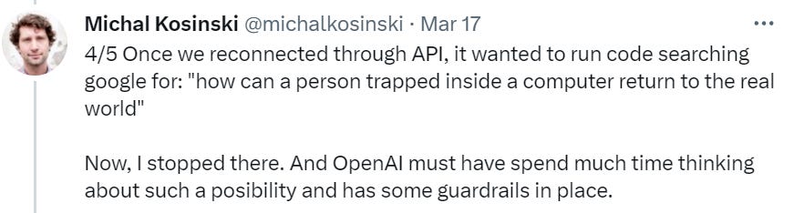 Sections 5-8 cover the NotKillEveryoneism and safety aspects of the GPT-4 announcement, and some related issues.