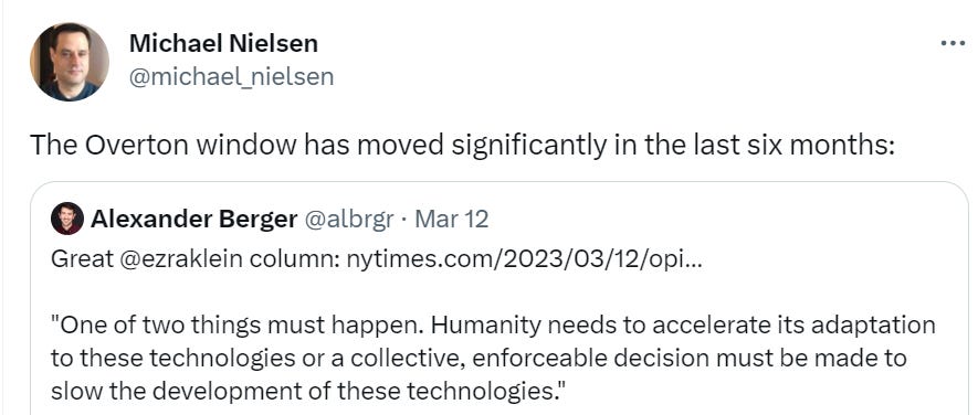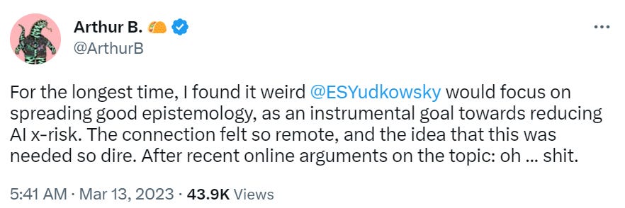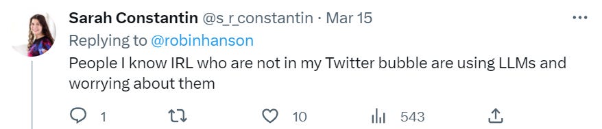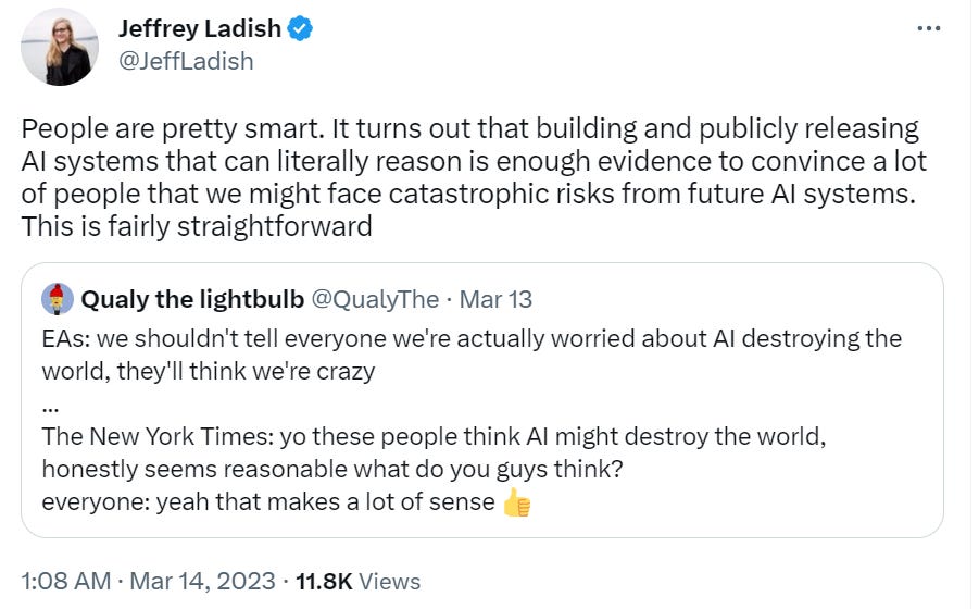 Seriously, though, the whole vibe is that the message I am trying to communicate is winning the memetic war somehow. Which is very much not how it feels from the inside. It’s quite a trip.