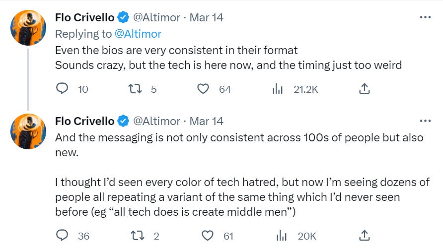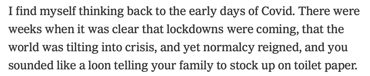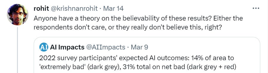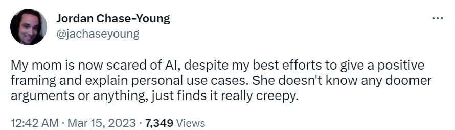 This doomer stuff has been happening concurrently to the NYT anti-tech stuff in the "culture wars" for lack of a better word. People are having a cathartic explosion for not being able to speak up optimistically about the future since 2016 or 2015. I think we're getting into a bit hysterical now in the other side in a way that is emotionally unhelpful.