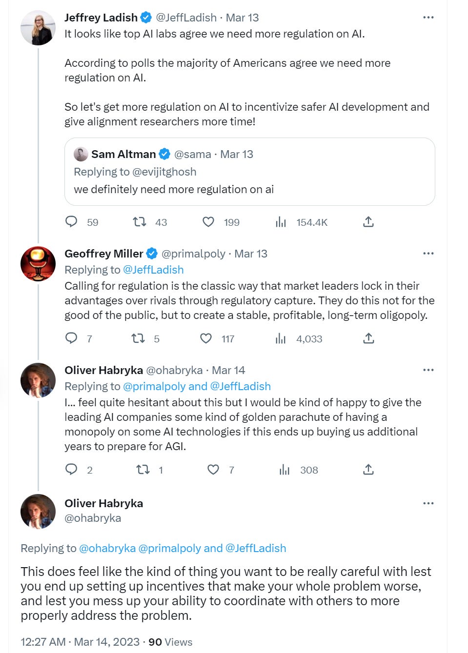 In another branch of the thread is discussion about the failure of the rationalist community and MIRI to speak up loudly against OpenAI when it was founded, despite everyone (and I am confident it was close to actual everyone involved) being completely horrified in private.