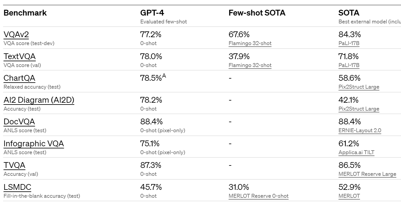 One big change highlighted in these charts is that GPT-4 is multi-modal, and can understand images. Thread here concludes the picture analysis is mostly quite good, with the exception that it can’t recognize particular people. OpenAI claims GPT-4 is substantially above best outside benchmark scores on several academic tests of computer vision, although not all of them.