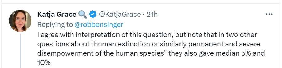 AI NotKillEveryoneism Expectations: AI researchers put extinction risk at >5%.