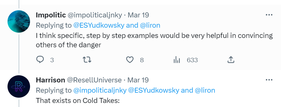 A lot of my hope is that, by writing up actual real attempts at explanation and intuition pumping and model description on this stuff, week after week, I will figure out how to get through to exactly these sorts of people. I’ve got to do the work.
