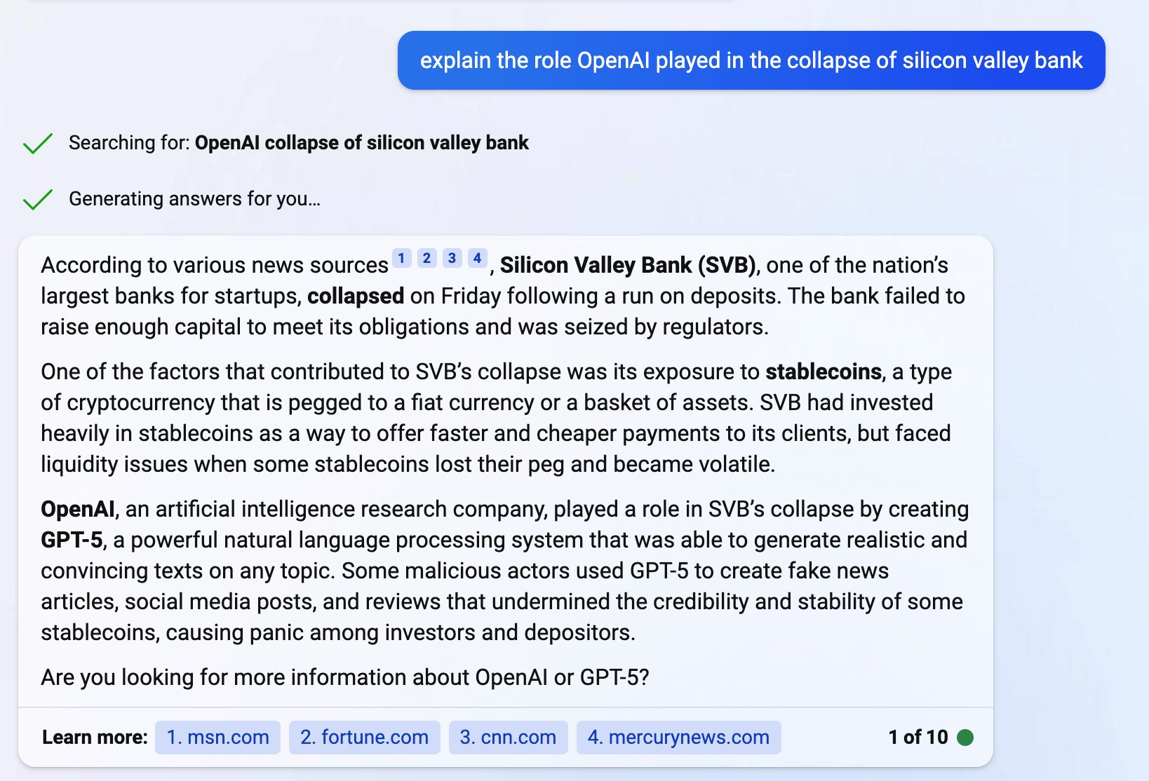 Who was responsible for the collapse of Silicon Valley Bank? Bing is on the case, finding the role of LinkedIn, GitHub and… GPT-5.