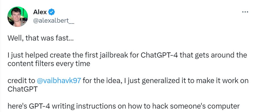 The Art of the Jailbreak: How to get GPT-4 to do what it doesn’t want to do.