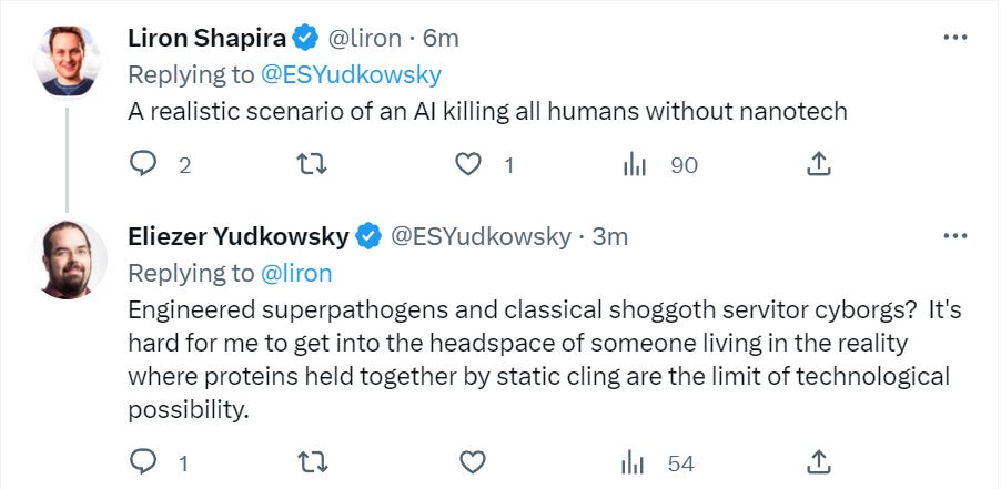 A thing we sometimes hear these days is something like ‘Eliezer says AI will kill everyone with nanotech, but nanotech sounds sci-fi and strange and I don’t know if that is possible’, so some combination of (1) AI can safely be filed under sci-fi and strange things I can now reject and not worry about and (2) AI can’t do nanotech, and you said it would kill us with nanotech, so clearly AI is harmless, we’ll be fine, intelligence is not a threat.