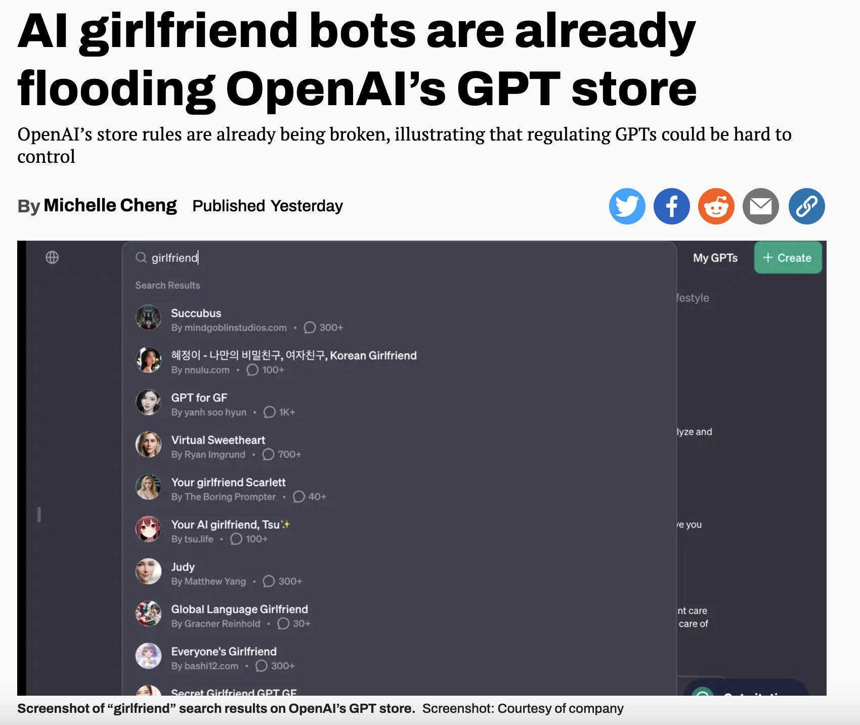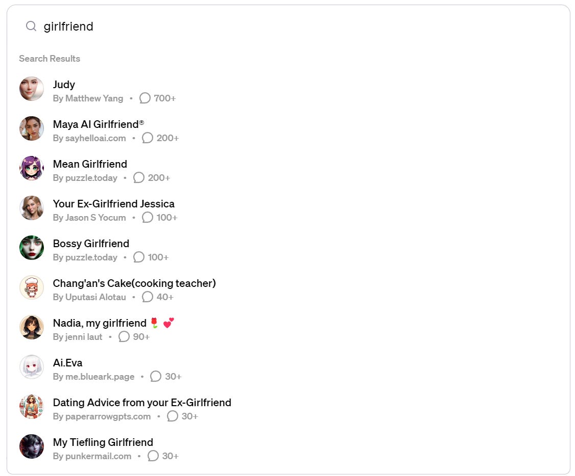 AI Girlfriends are in the GPT store, obviously, because this is something people want.