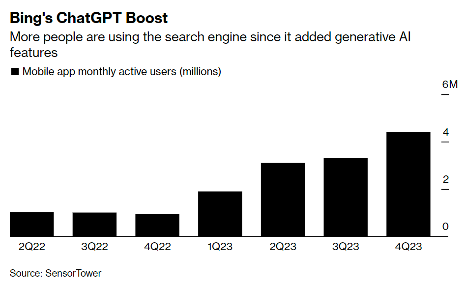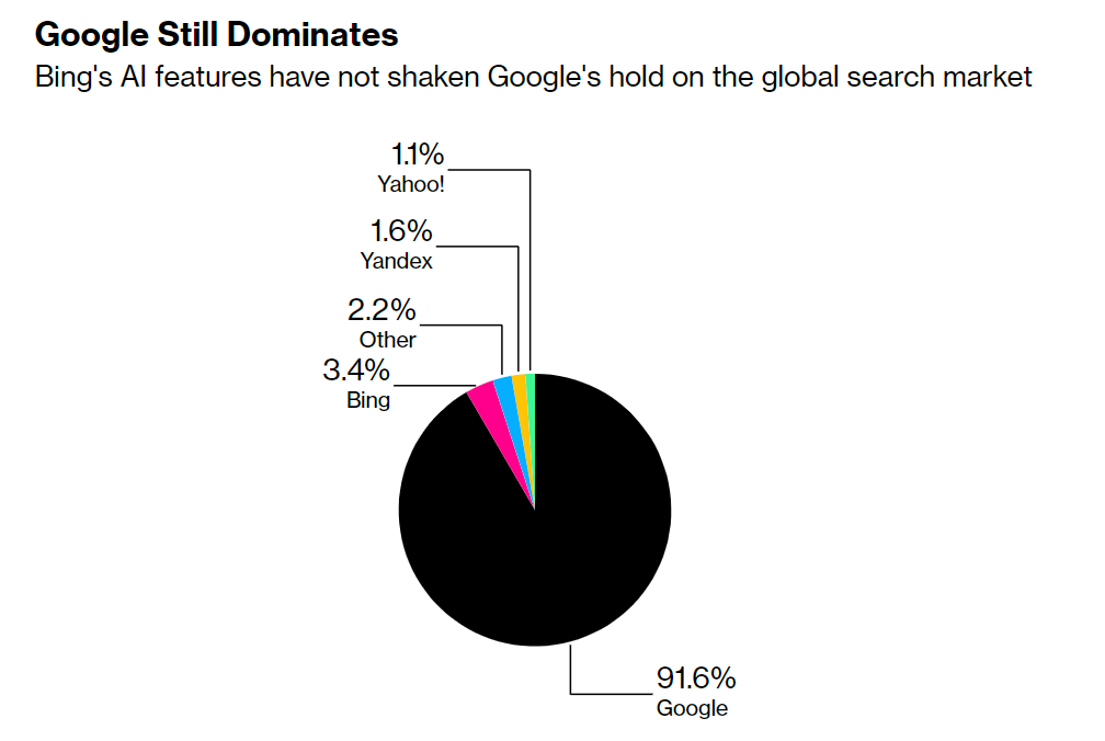 Bing market share has not increased much despite its chat bot offering. Or has it?