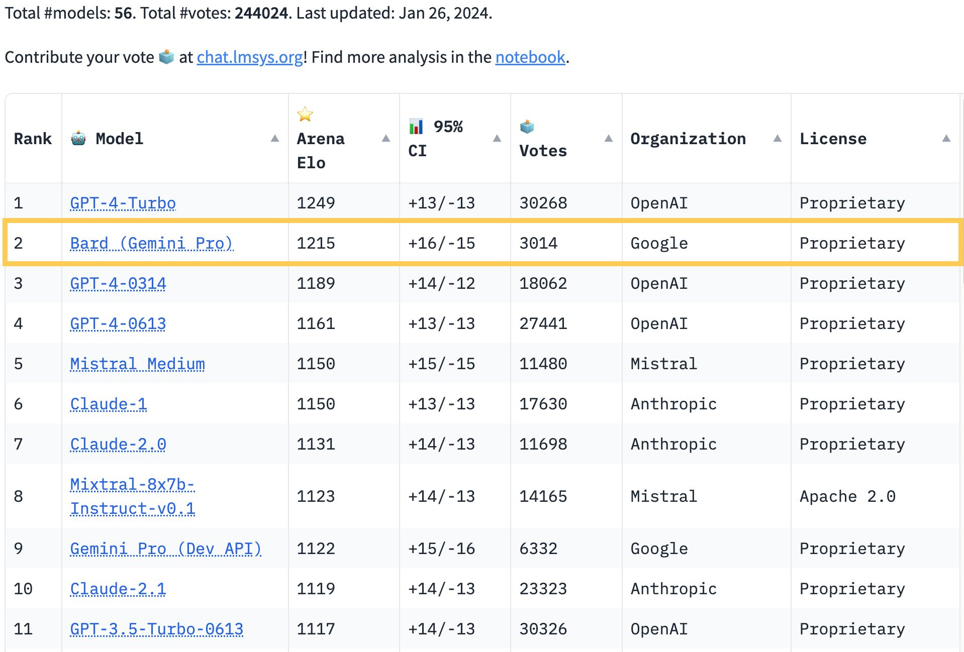 Bard shows up on the Arena Chatbot leaderboard in second place even with Gemini Pro. It is the first model to be ahead even of some versions of GPT-4.
