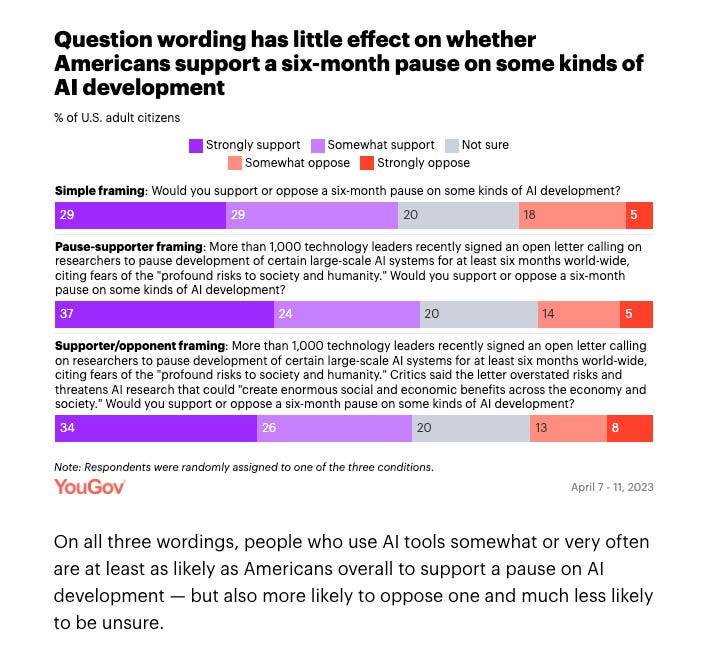 Good Use of Polling. American public says AI scarier than asteroids, less scary than climate change or world war. We can now calibrate. Also Americans support an AI pause when asked. The public is no fan of fast AI development.