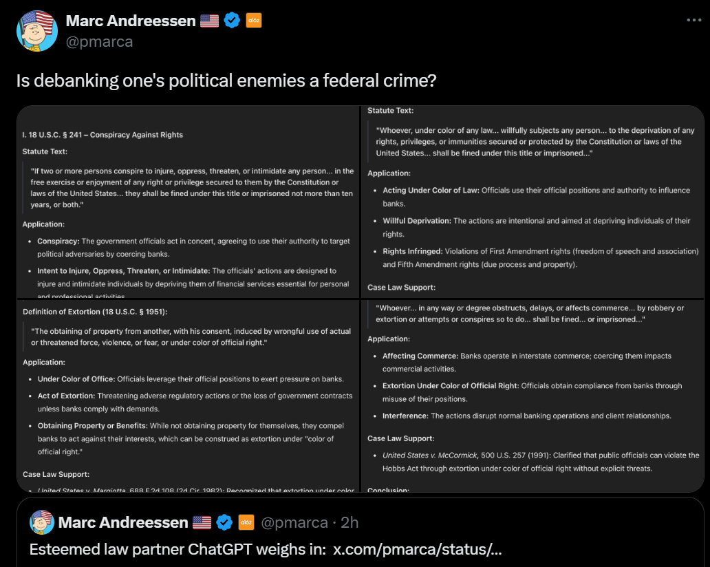 From November 2024: And here’s how Marc Andreessen thinks laws work and how he thinks they should be applied to people he doesn’t like when his allies get a little taste of power.