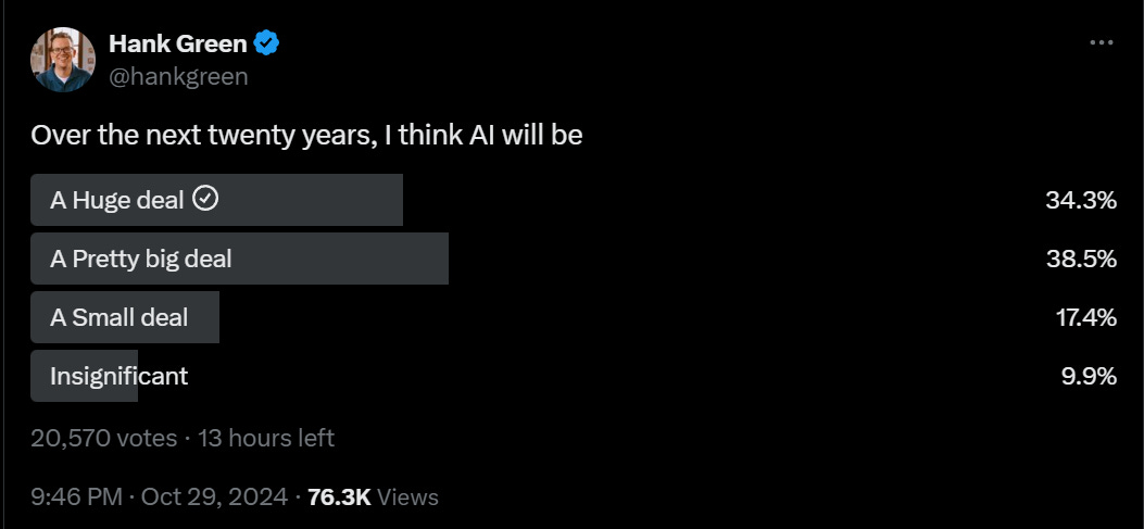 There were also various other stories, many of which involved OpenAI as they often do. There was a report of a model called ‘Orion’ in December but Altman denies it. They’re helping transcribe lots of medical records, and experiencing technical difficulties. They disbanded their AGI readiness team. They’re expanding advance voice mode. And so on.