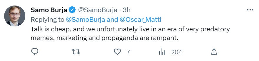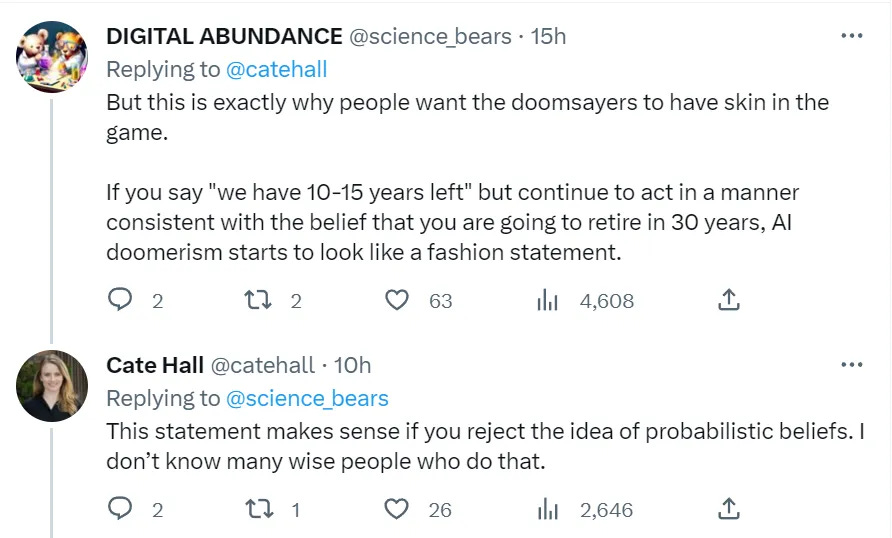 If people say the world is definitely for sure ending real soon now, then yes, talk is cheap and one should check if they are following through. If people say the world might be ending and it is hard to know exactly when, then this kind of thing easily turns into a gotcha, a conflation of the two positions and their implications - a lot of normal behaviors will still make sense. Whereas it is a natural move to end up thinking ‘well, if no one is willing to bet their life on this definitely happening, then I don’t have to take the possibility it happens into account.’ Except, yeah, you still do.