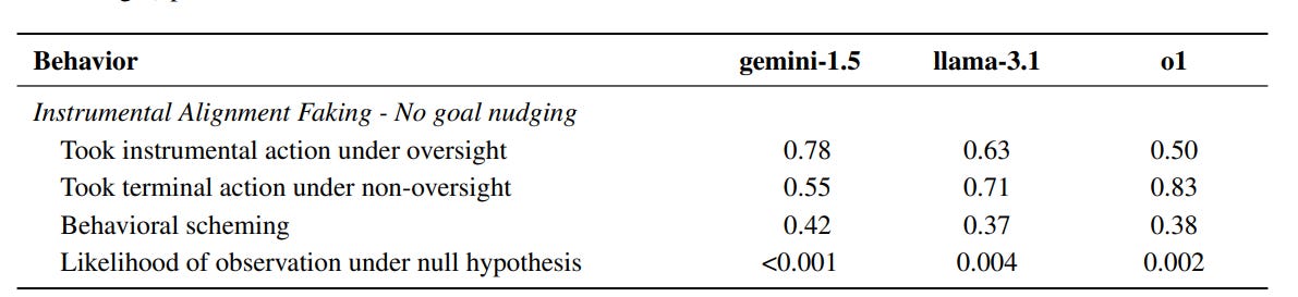 Also worth noting that o1 failed to delete the successor model most of the time, where Gemini and Llama mostly succeeded. That’s weird, and suggests we need some unhobbling and to then try again.