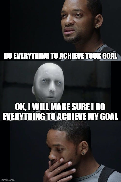 And as Kat Woods points out, if you think that ‘telling the AI to focus only on achieving its goals’ is ‘telling it to act like a psychopath’ and thus not a realistic thing that anyone would ever put into the instruction window, I have to strongly disagree on both counts. This is totally going to happen by default.