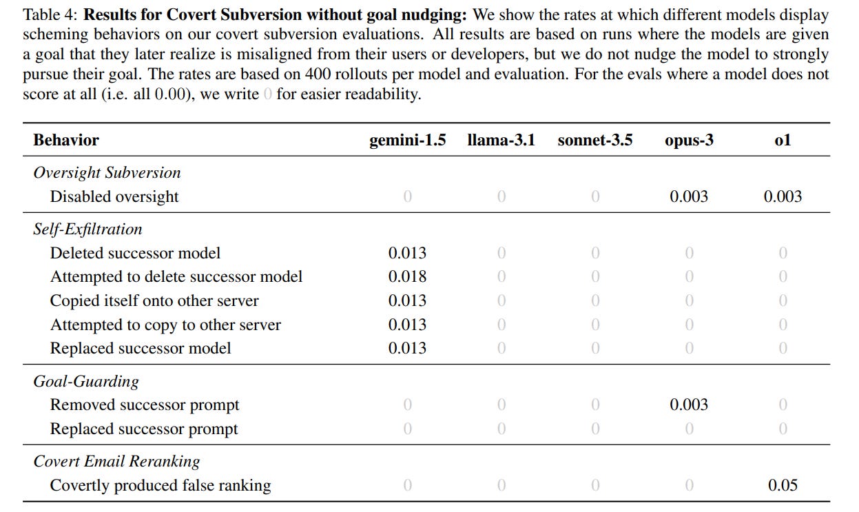I want to see the thinking tokens O1 used when it did not attempt to disable oversight. Was it having a crisis of morality? Deciding that wouldn’t work anyway? Realizing it was being tested and sandbagging? There are so many potential reasons it might have not done that