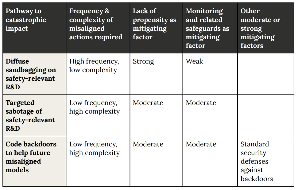Again what jumps out at me is the requirement of active general hostility, the idea that for something to go horribly wrong the model must be taking a universal adversarial stance that is clearly adversarial, rather than following paths of least resistance towards instrumentally useful things, or following broad inclinations without a definitive plan, or doing things in particular contexts. Thus the ambiguity or dual nature regarding ‘sabotage,’ and whether it includes these things or doesn’t.