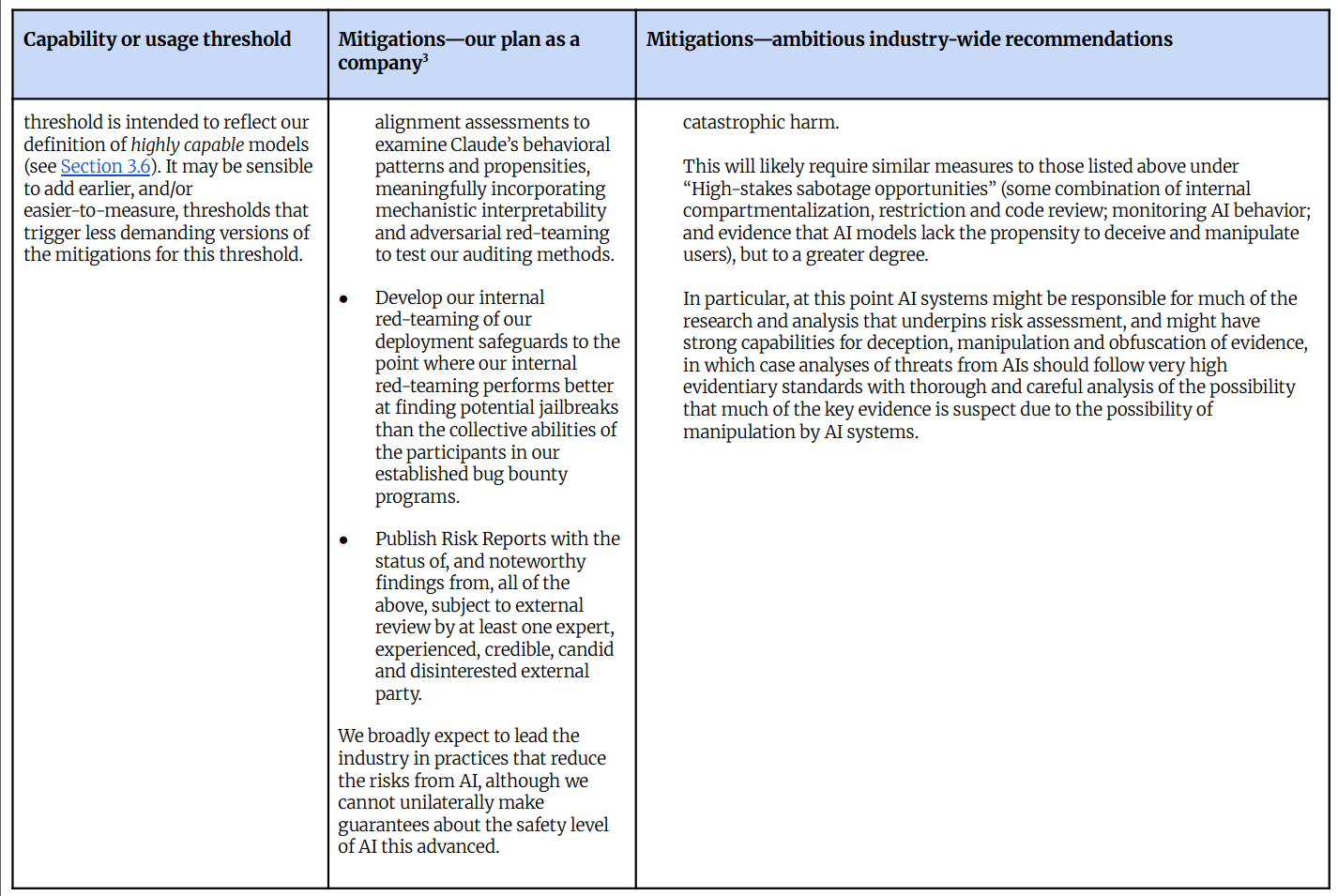 It also includes new information on risk mitigations for sabotage and non-novel bioweapons, and which threat models and risks are especially concerning, that aren’t available elsewhere. Those parts are more useful.
