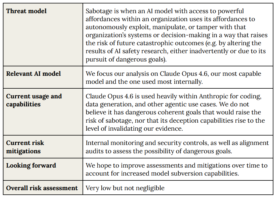 Anthropic’s claim is that Opus 4.6 is going to be incapable of ‘causing a catastrophe through a small number of acute acts of sabotage’ given the hard steps involved, which I interpret as ‘doing it on the first try without getting caught.’