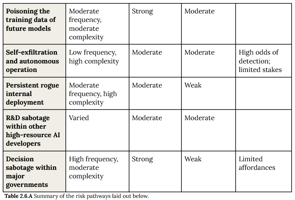 Backdoors in future models themselves seems more plausible and likely, especially via data poisoning, given various findings about that, which is pathway four. It’s a lot easier to imagine that the ‘code backdoor’ is to provide a method to trigger an AI. Again, I wouldn’t assume that this would be internally modeled as sabotage, that it need to be superficially ‘harmful’ or that it need even be intentional.