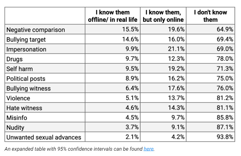 In a given week, 13% of users of Instagram between 13-15 said they had received unwanted sexual advances. 13% had seen ‘any violent, bloody or disturbing image’ which tells me nothing disturbs our kids anymore, and 19% saw ‘nudity or sexual images’ that they did not want to see.