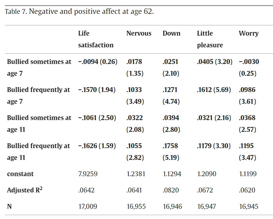 Bullying sucks and should not be tolerated, but also bullies target ‘losers’ in various senses, so them having worse overall outcomes is not obviously due to the bullying. Causation is both common and cuts both ways.