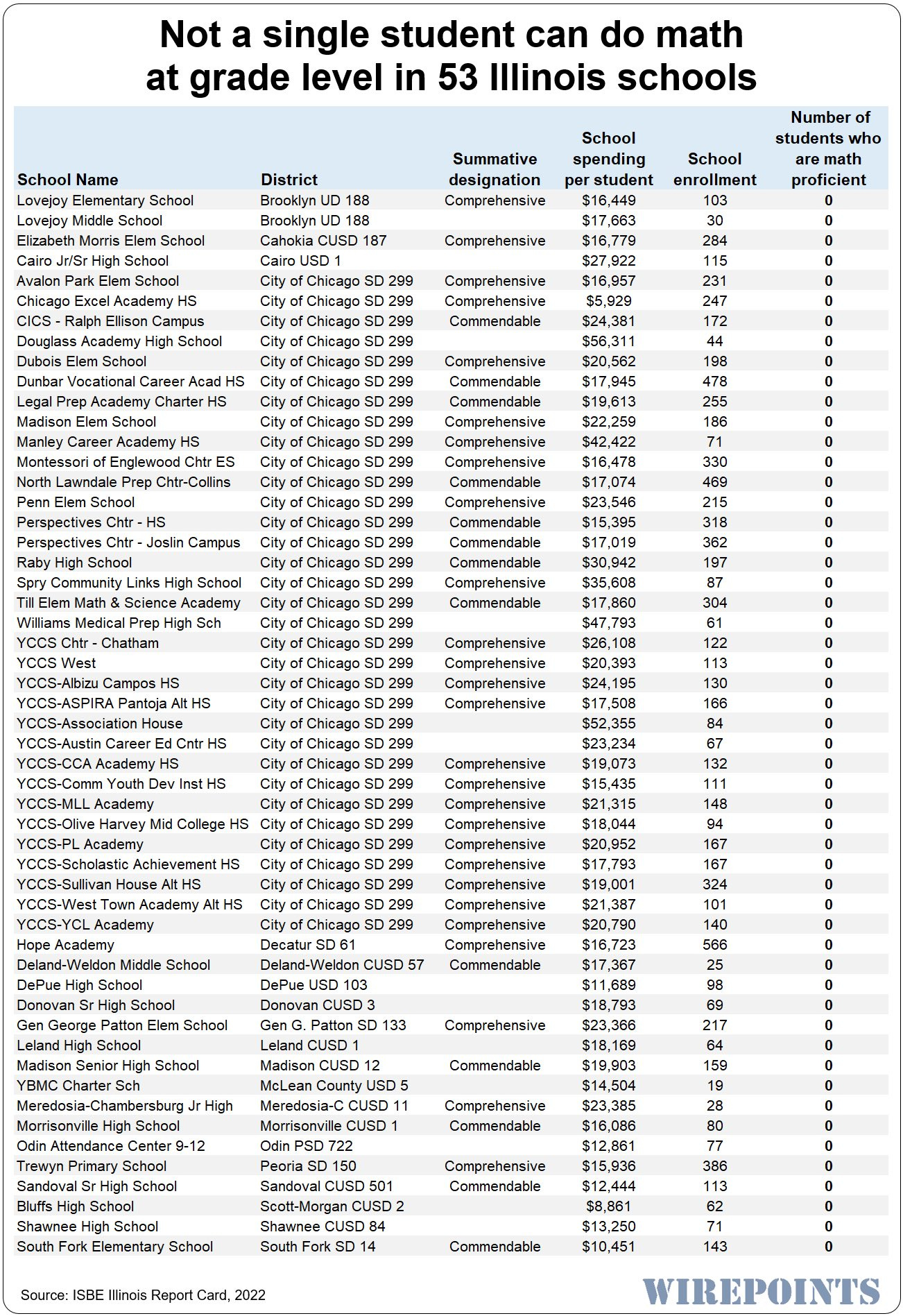 Marina Medvin: Not a single student can do math at grade level in 53 Illinois schools. As state spending per student goes up in Illinois, student performance goes down. Why is that? Most of the problematic schools are in Chicago.