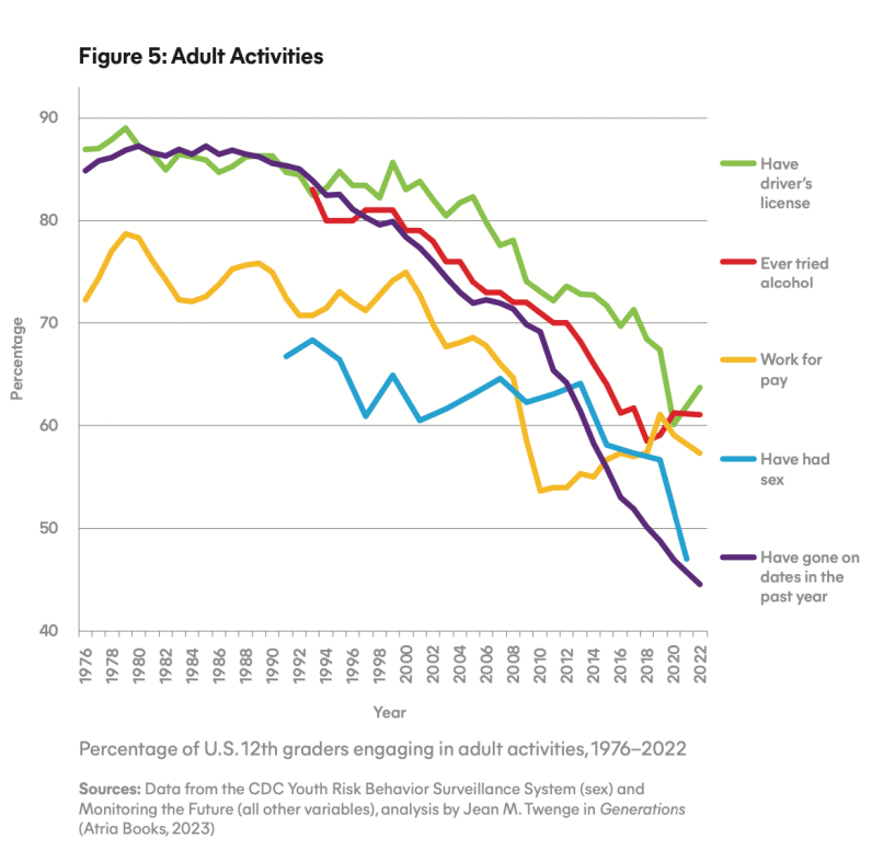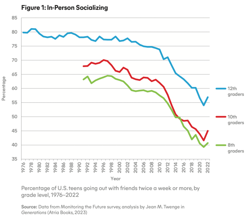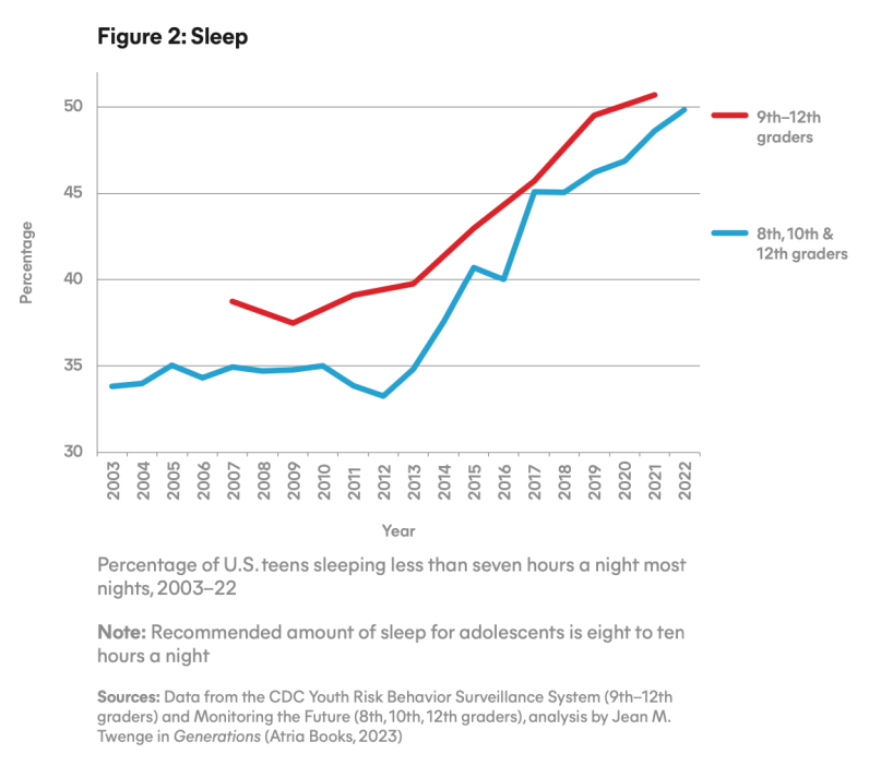 That is an additional 15% of kids not sleeping seven hours, and a 25%+ drop in socializing that mostly pre-dates the pandemic.