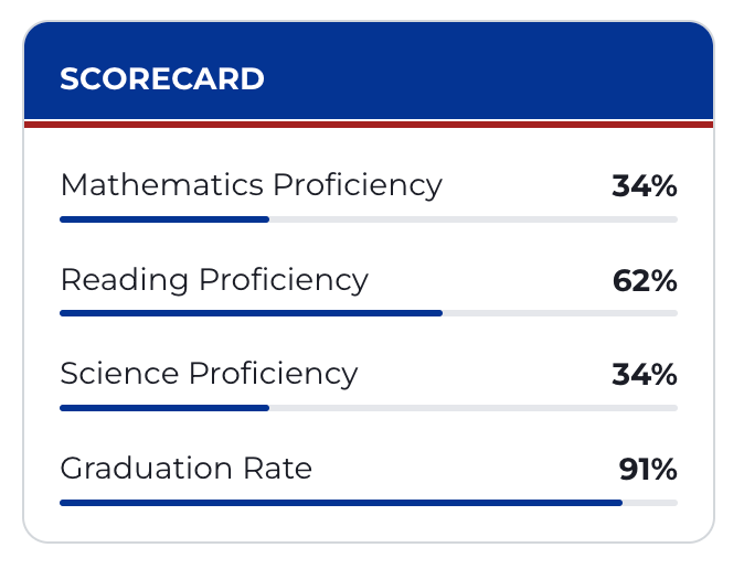 Meanwhile, test scores fell even further, with less than 4% of students proficient in math and under 12% at grade level in English, both down 4% since the program started.