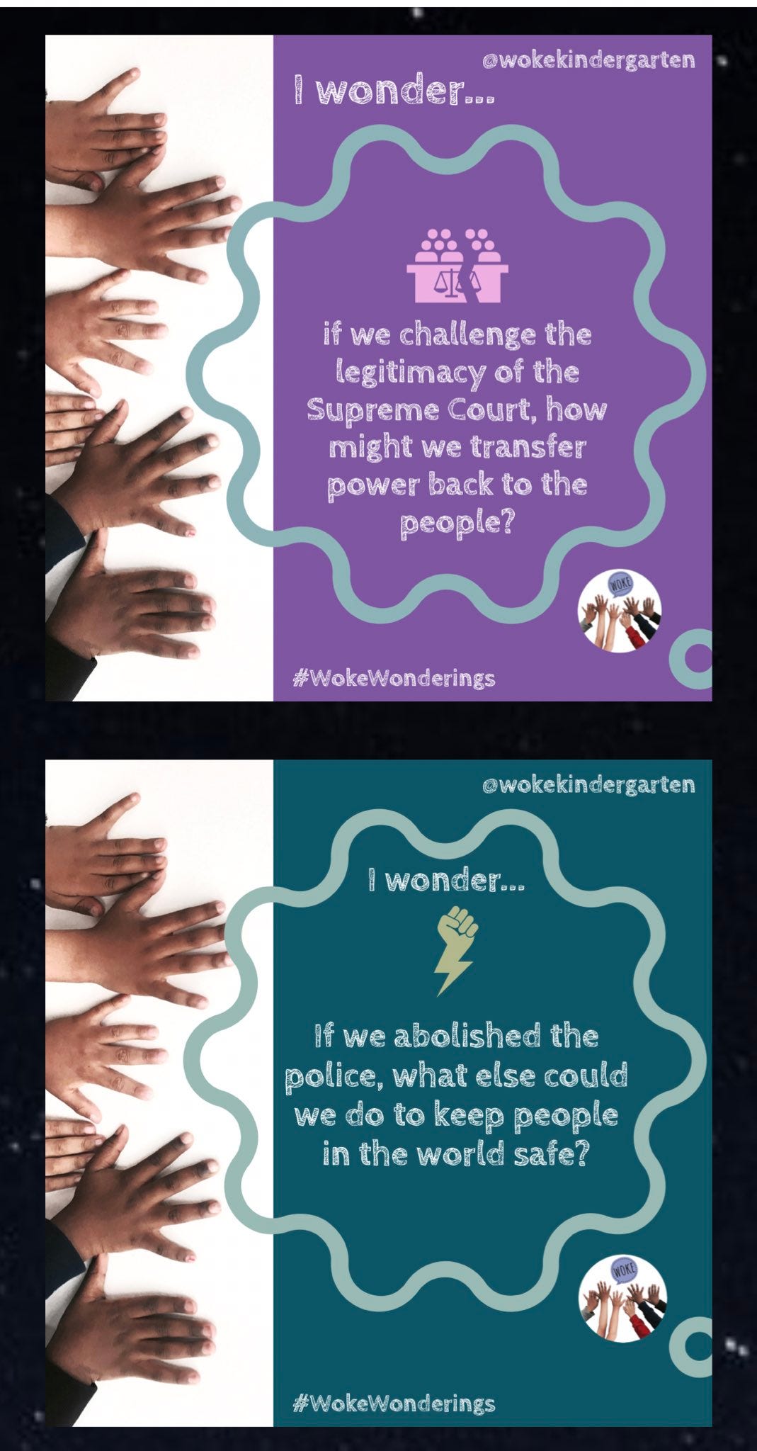 Carl: Woke Kindergarten is a real organization that sells their services to schools. Their mission is teach kids we can abolish work, landlords, Israel, and borders! One Bay Area school paid them 250k and watched student scores drop. Their “woke wonderings” are sadly hilarious.