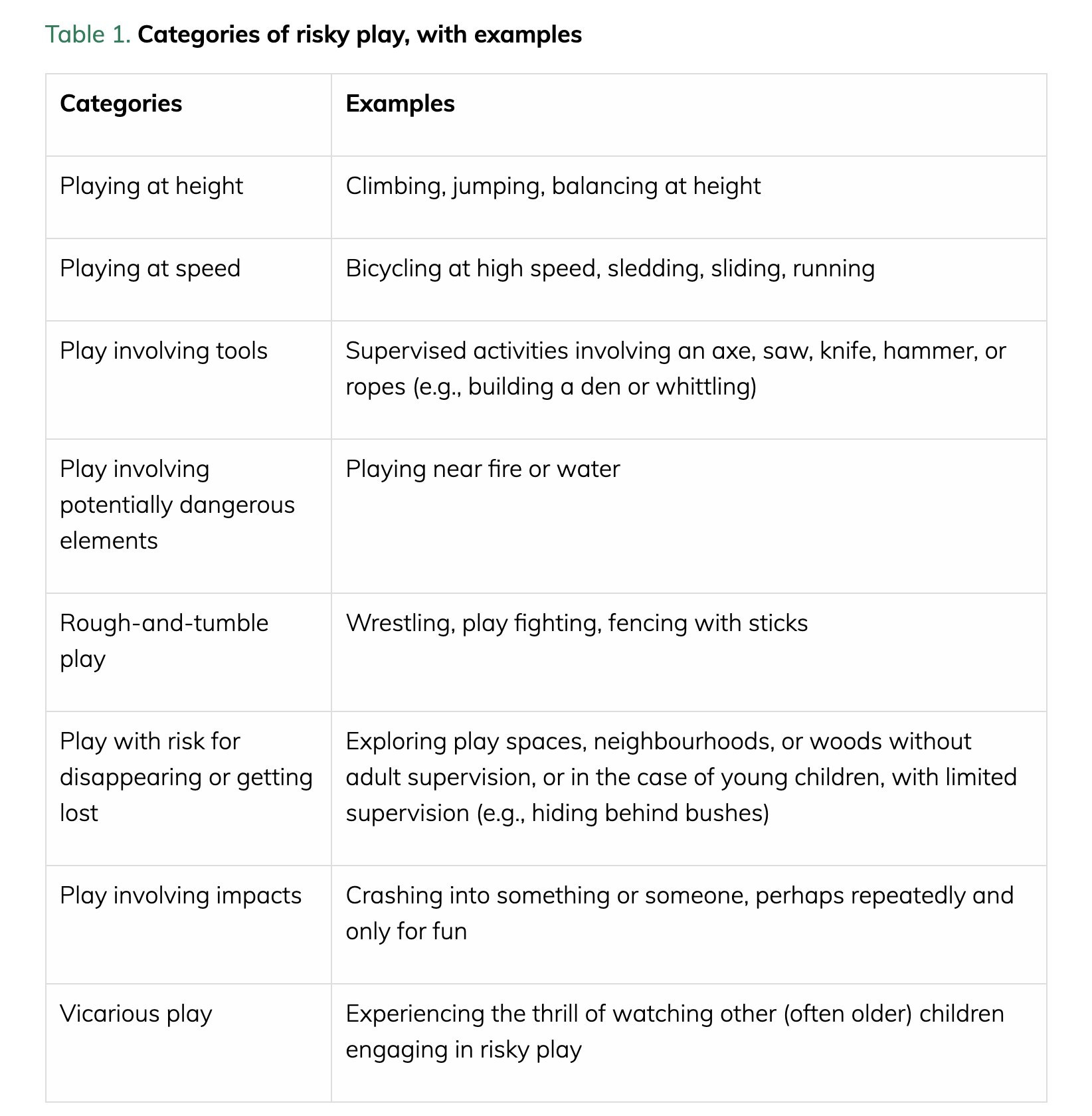 Etienne: this is strangely heartwarming: the canadian pediatrics association now recommends that children engage in risky play—"thrilling and exciting forms of free play that involve uncertainty of outcome and a possibility of physical injury"—because of benefits e.g. to mental health